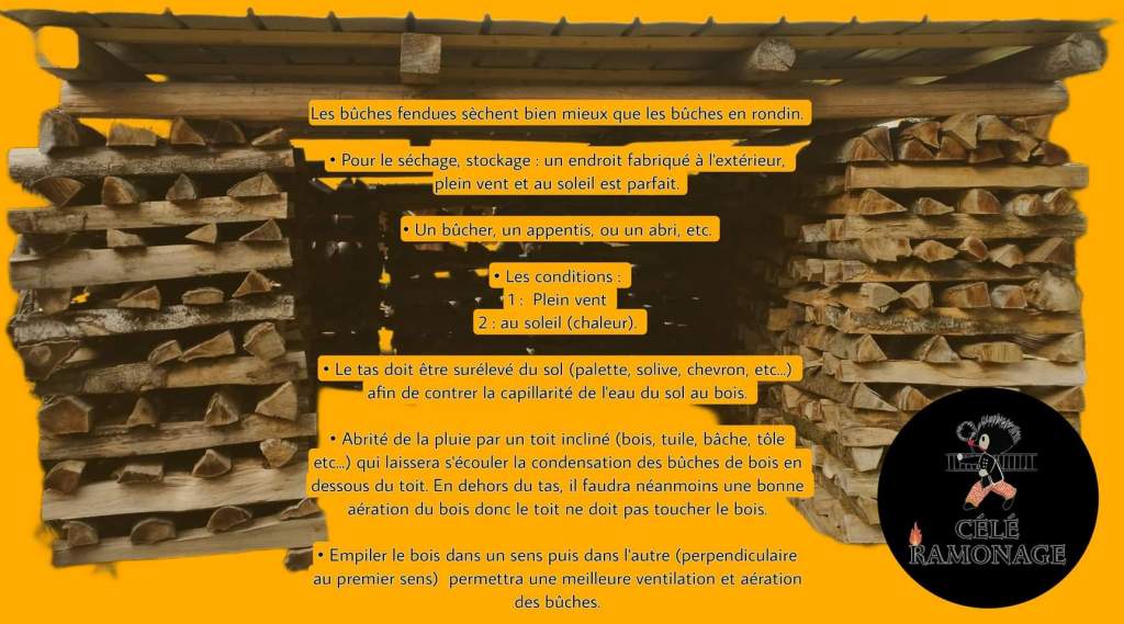 Le meilleur allié du stockage / séchage pour le bois :🌬️ Le vent! 🌬️ Et en second lieu la chaleur🌡️🌞🌡️(le soleil) + qu’il soit abrité de la pluie.